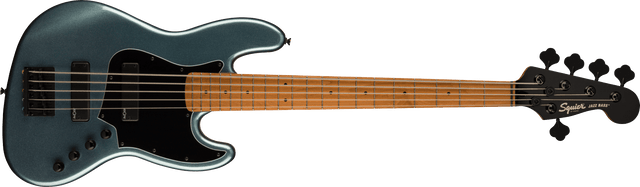 The Squier® Contemporary Active Jazz Bass® HH V brings modern features and bold aesthetics to an iconic Fender platform to satisfy today's most discerning and daring players. At the heart of this bass is a pair of Squier SQR™ ceramic humbucking pickups powered by a Fender-designed active 9-volt preamp, offering intuitive controls for volume, pickup blend, traditional tone and stacked boost controls for bass and treble. The roasted maple neck was chosen for its optimal tone and stability, and a sculpted heel design allows for improved access to the upper frets. High-performance components round out the feature list and include a modern bridge with added mass for improved body resonance, and a set of open-gear tuning machines for smooth tuning action. Eye-catching styling cues include stealthy black hardware and a sleek painted headstock with chrome logos for a premium look.