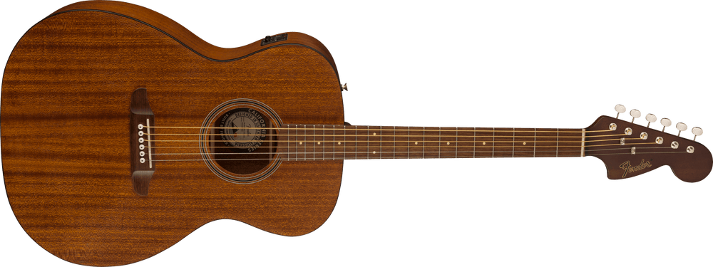 Crafted from all-laminated sapele, the comfortable mid-sized concert body of the Monterey Standard has a deep, rich wood grain and produces a satisfyingly warm and balanced tone well-suited for a variety of playing styles. The easy-to-play nato neck is designed with a slim "C"-shaped profile with rounded fingerboard edges for optimal comfort, a short 24.75" scale length for low string tension, and a 6-in-line headstock for a distinctive look born from Fender's 1970s-era electric guitar DNA. The Monterey Standard also has a narrow string spacing at the bridge, ideal for players with small hands or those seeking reduced picking-hand fatigue. Other notable details include a silky satin urethane finish, vintage-style tuning machines for smooth, accurate tuning, and a GraphTech® NuBone® nut and saddle for detailed harmonic character. Rounding out the feature list is a Fender® preamp system that allows faithful reproduction of the guitar's natural sound when plugged into an amplifier or recording device, and includes a built-in tuner for convenient on-the-fly adjustment.