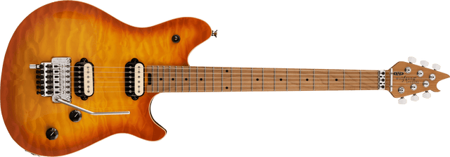 A pair of flagship custom-designed EVH® Wolfgang Alnico 2 humbucking pickups are mounted directly to the body, providing dynamic yet articulate voicing, as well as endless sustain for powerful chords and melody lines. A sturdy and dependable EVH-branded Floyd Rose® locking trem and Floyd Rose locking nut work in tandem for precise tuning even with extreme changes in pitch, while the EVH D-Tuna® retunes to drop-D and back with strict accuracy at the flick of a finger. The volume knob with treble bleed circuit has a 500K EVH Bourns® low friction pot for smooth swells and a tone control knob with a 250K Bourns high friction tone pot that prevents accidental tone shifting.